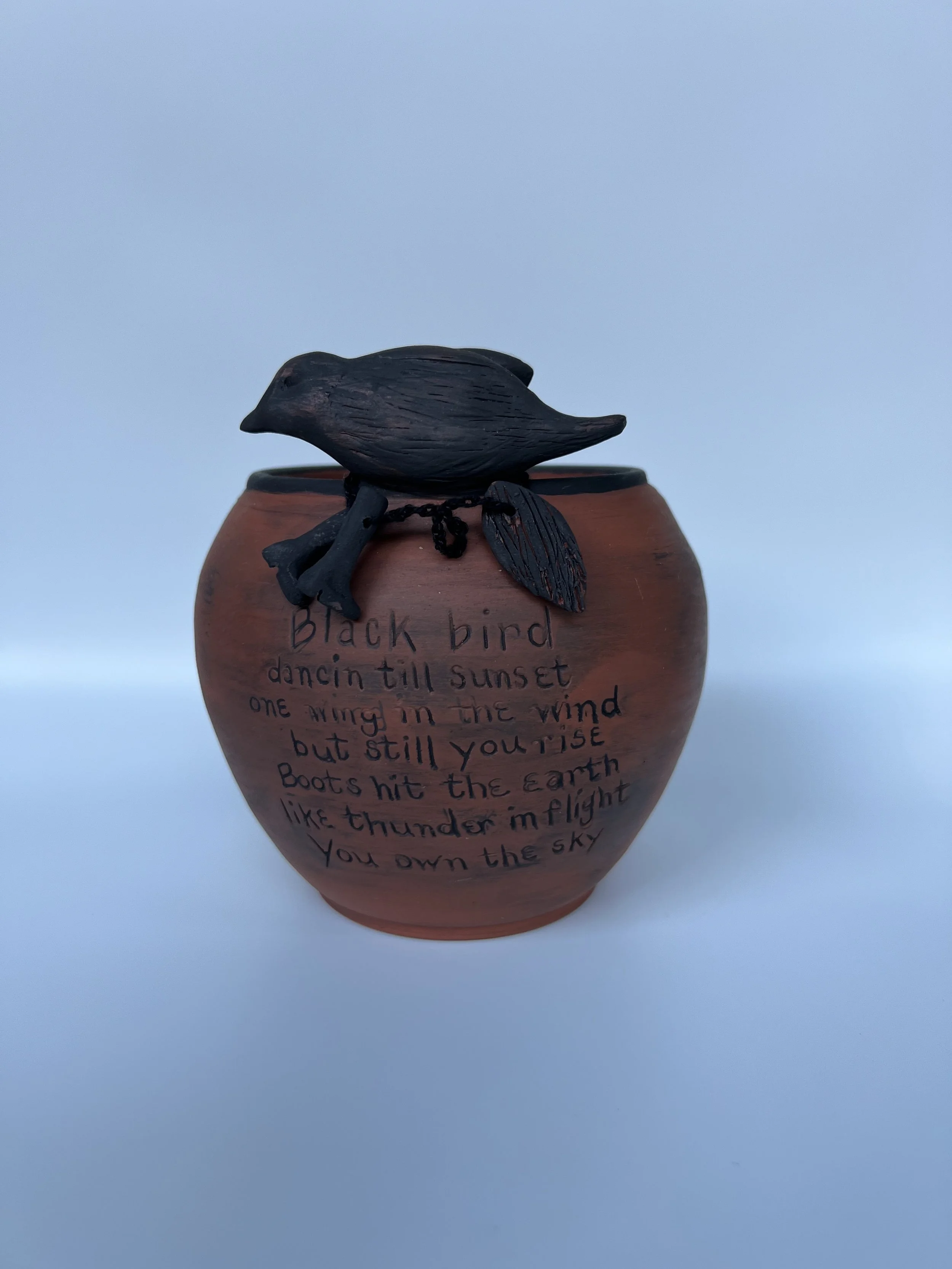 My hands are drawn to clay, thread, and fiber—materials that speak through texture and rhythm. In every clay piece, stitch, glaze, and knot, I search for connection, for meaning made tangible. Each art form is a quiet offering, a story shaped by intuition and care. My ceramic work is rooted in my early inspirations as a young girl. I use wheel-throwing and slab-building techniques, painting each surface with underglazes, glazes, and freehand self taught drawings. My work is a reflection of my Mexican heritage—an homage to generations of craft, culture, and memory.Gallery